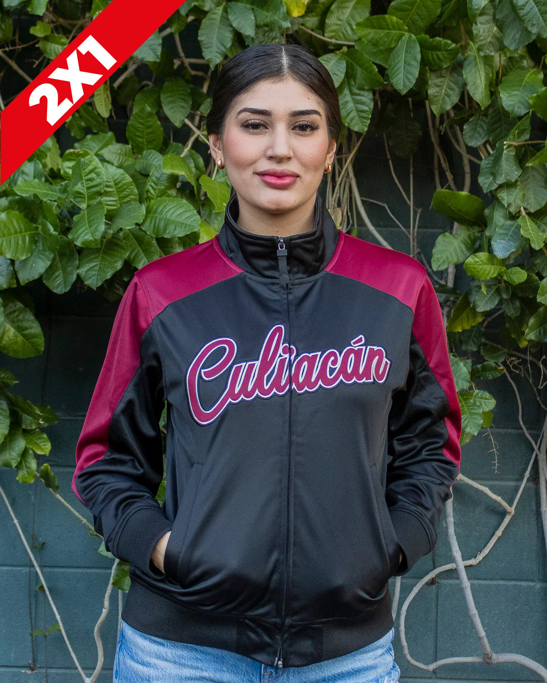 Jacket "Culiacán" negra con guinda.