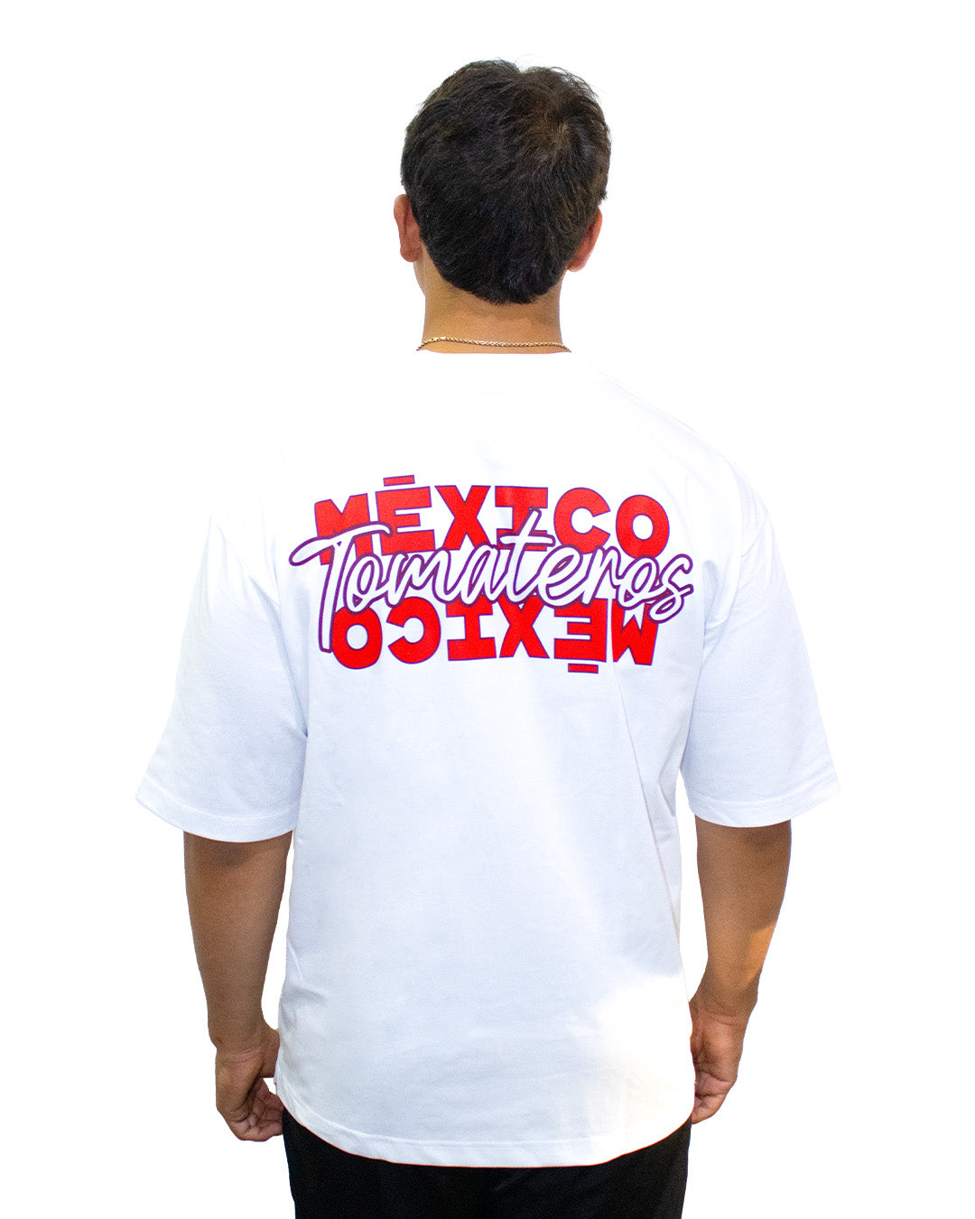 Playera Tomateros de Culiacán blanca con detalles en rojo.